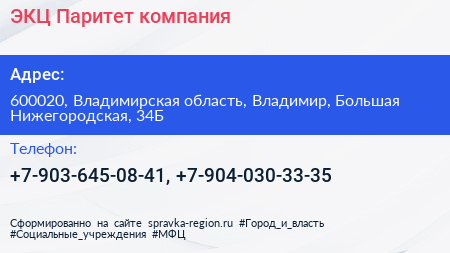 ЭКЦ Паритет, компания по адресу 600020, Владимирская область, Владимир, Большая Нижегородская, 34Б в дальнейшем Организация, размещена в следующих категориях: