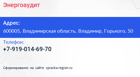 Энергоаудит по адресу 600005, Владимирская область, Владимир, Горького, 50 в дальнейшем Организация, размещена в следующих категориях: