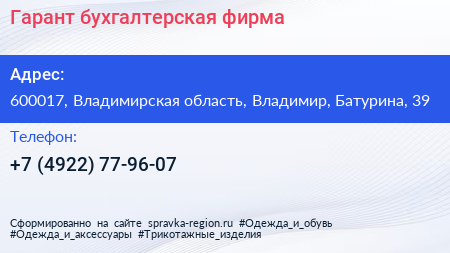 Гарант, бухгалтерская фирма по адресу 600017, Владимирская область, Владимир, Батурина, 39 в дальнейшем Организация, размещена в следующих категориях: