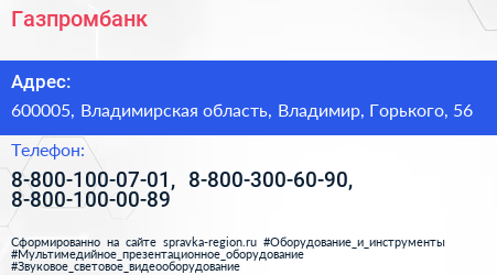 Газпромбанк по адресу 600005, Владимирская область, Владимир, Горького, 56 в дальнейшем Организация, размещена в следующих категориях: