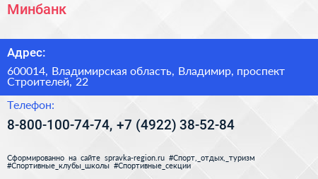 Минбанк по адресу 600014, Владимирская область, Владимир, проспект Строителей, 22 в дальнейшем Организация, размещена в следующих категориях: