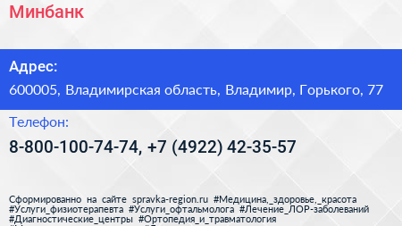 Минбанк по адресу 600005, Владимирская область, Владимир, Горького, 77 в дальнейшем Организация, размещена в следующих категориях: