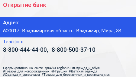Открытие, банк по адресу 600017, Владимирская область, Владимир, Мира, 34 в дальнейшем Организация, размещена в следующих категориях: