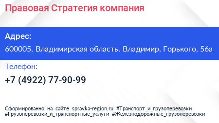 Правовая Стратегия, компания по адресу 600005, Владимирская область, Владимир, Горького, 56а в дальнейшем Организация, размещена в следующих категориях: