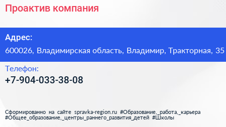 Проактив, компания по адресу 600026, Владимирская область, Владимир, Тракторная, 35 в дальнейшем Организация, размещена в следующих категориях: