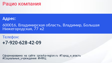 Рацио, компания по адресу 600016, Владимирская область, Владимир, Большая Нижегородская, 77 к2 в дальнейшем Организация, размещена в следующих категориях: