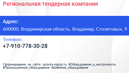 Региональная тендерная компания по адресу 600000, Владимирская область, Владимир, Столетовых, 9 в дальнейшем Организация, размещена в следующих категориях: