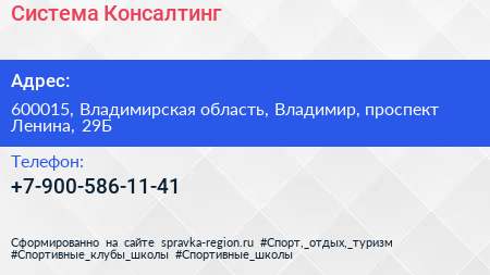 Система Консалтинг по адресу 600015, Владимирская область, Владимир, проспект Ленина, 29Б в дальнейшем Организация, размещена в следующих категориях: