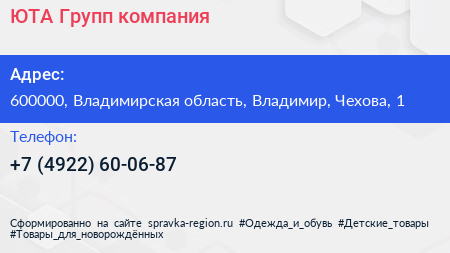 ЮТА-Групп, компания по адресу 600000, Владимирская область, Владимир, Чехова, 1 в дальнейшем Организация, размещена в следующих категориях: