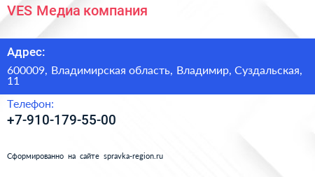 VES-Медиа, компания по адресу 600009, Владимирская область, Владимир, Суздальская, 11 в дальнейшем Организация, размещена в следующих категориях: