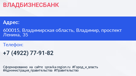 ВЛАДБИЗНЕСБАНК по адресу 600015, Владимирская область, Владимир, проспект Ленина, 35 в дальнейшем Организация, размещена в следующих категориях: