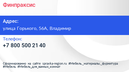 Финпраксис по адресу улица Горького, 56А, Владимир в дальнейшем Организация, размещена в следующих категориях: