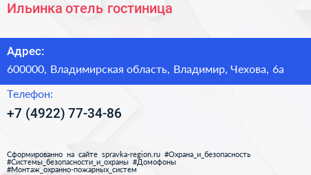 Ильинка-отель, гостиница по адресу 600000, Владимирская область, Владимир, Чехова, 6а в дальнейшем Организация, размещена в следующих категориях: