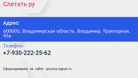 Слетать.ру по адресу 600005, Владимирская область, Владимир, Тракторная, 45а в дальнейшем Организация, размещена в следующих категориях: