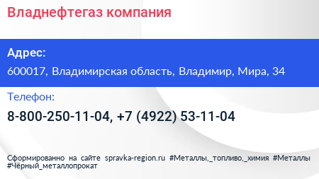 Владнефтегаз, компания по адресу 600017, Владимирская область, Владимир, Мира, 34 в дальнейшем Организация, размещена в следующих категориях: