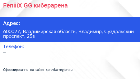 FeniiiX.GG, киберарена по адресу 600027, Владимирская область, Владимир, Суздальский проспект, 25в в дальнейшем Организация, размещена в следующих категориях: