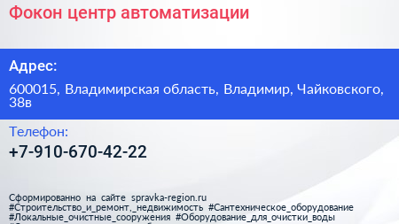 Фокон, центр автоматизации по адресу 600015, Владимирская область, Владимир, Чайковского, 38в в дальнейшем Организация, размещена в следующих категориях: