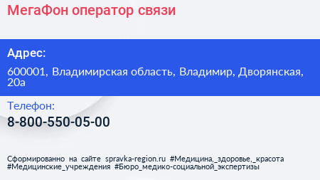 МегаФон, оператор связи по адресу 600001, Владимирская область, Владимир, Дворянская, 20а в дальнейшем Организация, размещена в следующих категориях:
