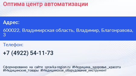 Оптима, центр автоматизации по адресу 600022, Владимирская область, Владимир, Благонравова, 3 в дальнейшем Организация, размещена в следующих категориях: