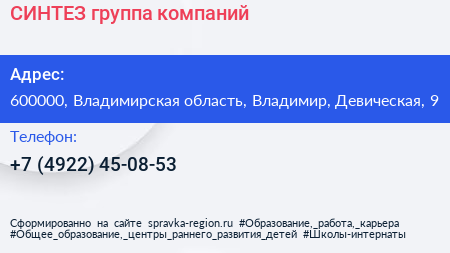 СИНТЕЗ, группа компаний по адресу 600000, Владимирская область, Владимир, Девическая, 9 в дальнейшем Организация, размещена в следующих категориях:
