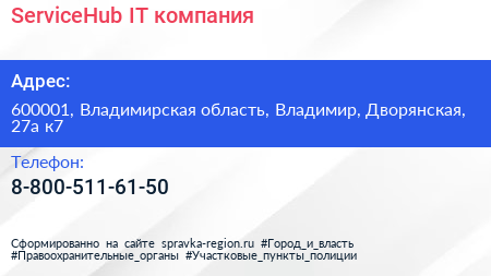 ServiceHub, IT-компания по адресу 600001, Владимирская область, Владимир, Дворянская, 27а к7 в дальнейшем Организация, размещена в следующих категориях: