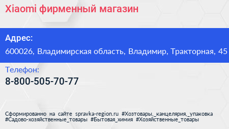Xiaomi, фирменный магазин по адресу 600026, Владимирская область, Владимир, Тракторная, 45 в дальнейшем Организация, размещена в следующих категориях: