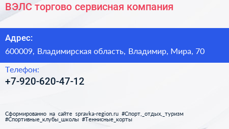 ВЭЛС, торгово-сервисная компания по адресу 600009, Владимирская область, Владимир, Мира, 70 в дальнейшем Организация, размещена в следующих категориях: