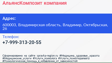 АльянсКомпозит, компания по адресу 600003, Владимирская область, Владимир, Октябрьская, 26 в дальнейшем Организация, размещена в следующих категориях: