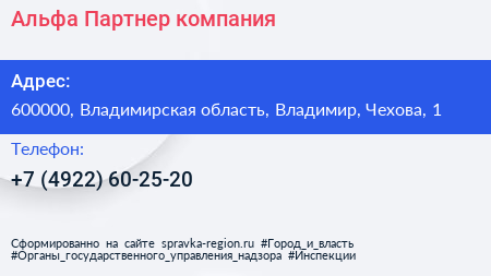 Альфа-Партнер, компания по адресу 600000, Владимирская область, Владимир, Чехова, 1 в дальнейшем Организация, размещена в следующих категориях: