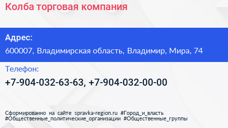 Колба, торговая компания по адресу 600007, Владимирская область, Владимир, Мира, 74 в дальнейшем Организация, размещена в следующих категориях: