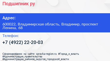 Подшипник.ру по адресу 600022, Владимирская область, Владимир, проспект Ленина, 68 в дальнейшем Организация, размещена в следующих категориях: