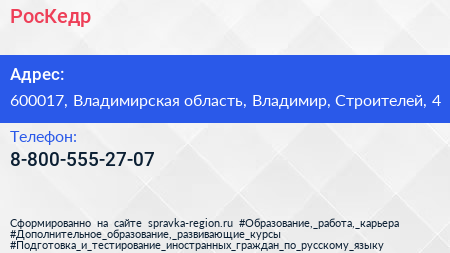 РосКедр по адресу 600017, Владимирская область, Владимир, Строителей, 4 в дальнейшем Организация, размещена в следующих категориях: