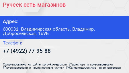 Ручеек, сеть магазинов по адресу 600031, Владимирская область, Владимир, Добросельская, 169Б в дальнейшем Организация, размещена в следующих категориях:
