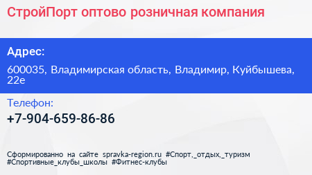 СтройПорт, оптово-розничная компания по адресу 600035, Владимирская область, Владимир, Куйбышева, 22е в дальнейшем Организация, размещена в следующих категориях: