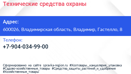 Технические средства охраны по адресу 600026, Владимирская область, Владимир, Гастелло, 8 в дальнейшем Организация, размещена в следующих категориях: