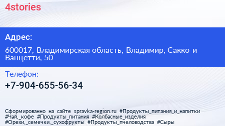 4stories по адресу 600017, Владимирская область, Владимир, Сакко и Ванцетти, 50 в дальнейшем Организация, размещена в следующих категориях: