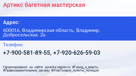 Артикс, багетная мастерская по адресу 600016, Владимирская область, Владимир, Добросельская, 2а в дальнейшем Организация, размещена в следующих категориях: