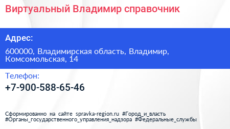 Виртуальный Владимир, справочник по адресу 600000, Владимирская область, Владимир, Комсомольская, 14 в дальнейшем Организация, размещена в следующих категориях: