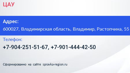 ЦАУ по адресу 600027, Владимирская область, Владимир, Растопчина, 55 в дальнейшем Организация, размещена в следующих категориях:
