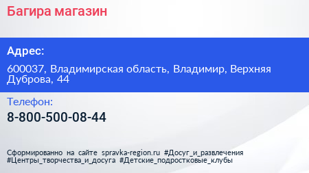Багира, магазин по адресу 600037, Владимирская область, Владимир, Верхняя Дуброва, 44 в дальнейшем Организация, размещена в следующих категориях: