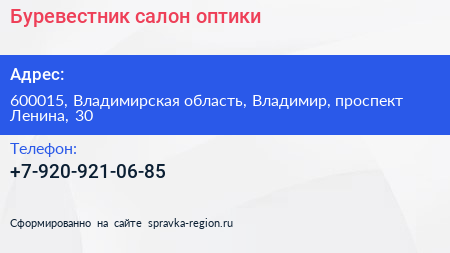 Буревестник, салон оптики по адресу 600015, Владимирская область, Владимир, проспект Ленина, 30 в дальнейшем Организация, размещена в следующих категориях: