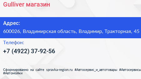 Gulliver, магазин по адресу 600026, Владимирская область, Владимир, Тракторная, 45 в дальнейшем Организация, размещена в следующих категориях: