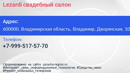 Lezardi, свадебный салон по адресу 600000, Владимирская область, Владимир, Дворянская, 10 в дальнейшем Организация, размещена в следующих категориях: