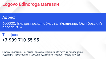 Logovo Edinoroga, магазин по адресу 600000, Владимирская область, Владимир, Октябрьский проспект, 4 в дальнейшем Организация, размещена в следующих категориях: