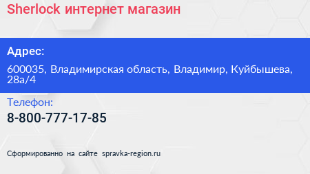 Sherlock, интернет-магазин по адресу 600035, Владимирская область, Владимир, Куйбышева, 28а/4 в дальнейшем Организация, размещена в следующих категориях: