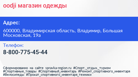 oodji, магазин одежды по адресу 600000, Владимирская область, Владимир, Большая Московская, 19а в дальнейшем Организация, размещена в следующих категориях: