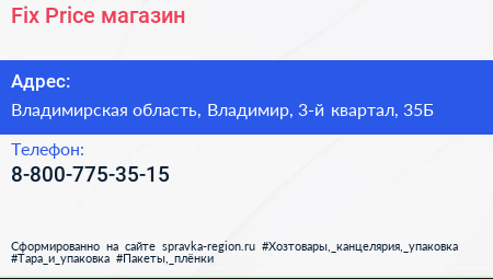 Fix Price, магазин по адресу Владимирская область, Владимир, 3-й квартал, 35Б в дальнейшем Организация, размещена в следующих категориях: