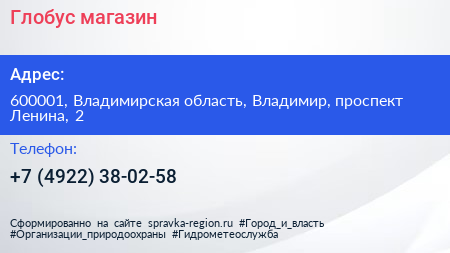 Глобус, магазин по адресу 600001, Владимирская область, Владимир, проспект Ленина, 2 в дальнейшем Организация, размещена в следующих категориях:
