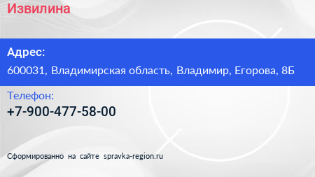 Извилина по адресу 600031, Владимирская область, Владимир, Егорова, 8Б в дальнейшем Организация, размещена в следующих категориях: