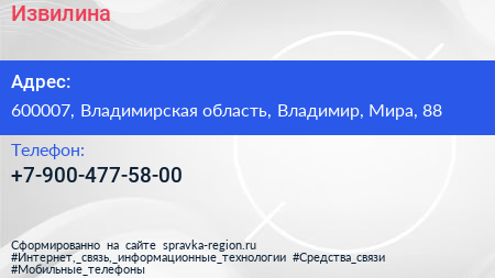 Извилина по адресу 600007, Владимирская область, Владимир, Мира, 88 в дальнейшем Организация, размещена в следующих категориях: